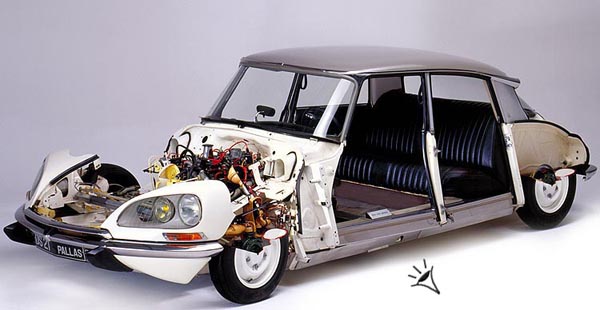 60. El DS al descubierto En las páginas siguientes se nos muestra imágenes de la mecánica: suspensión, sistema hidráulico, frenos, dirección, motor, y demás órganos del DS al descubierto, como si de una radiografía se tratase.